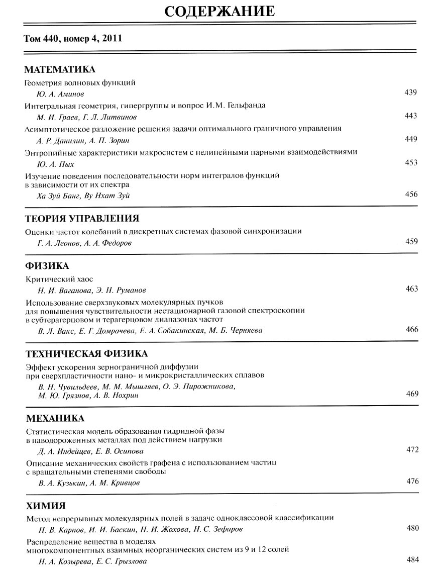 3.Доклады Академии наук. -2011.-Т.440, N 4. Содержание с.439-484 Содержание с.488-536 Содержание с.540-574