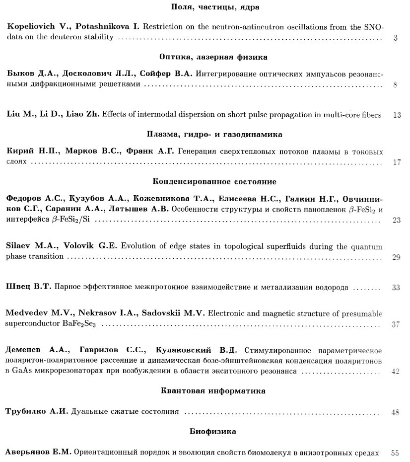 19.Журнал экспериментальной и теоретической физики. -2012.-Т.141, N 1. Содержание с.5-109 Содержание с.122-195
