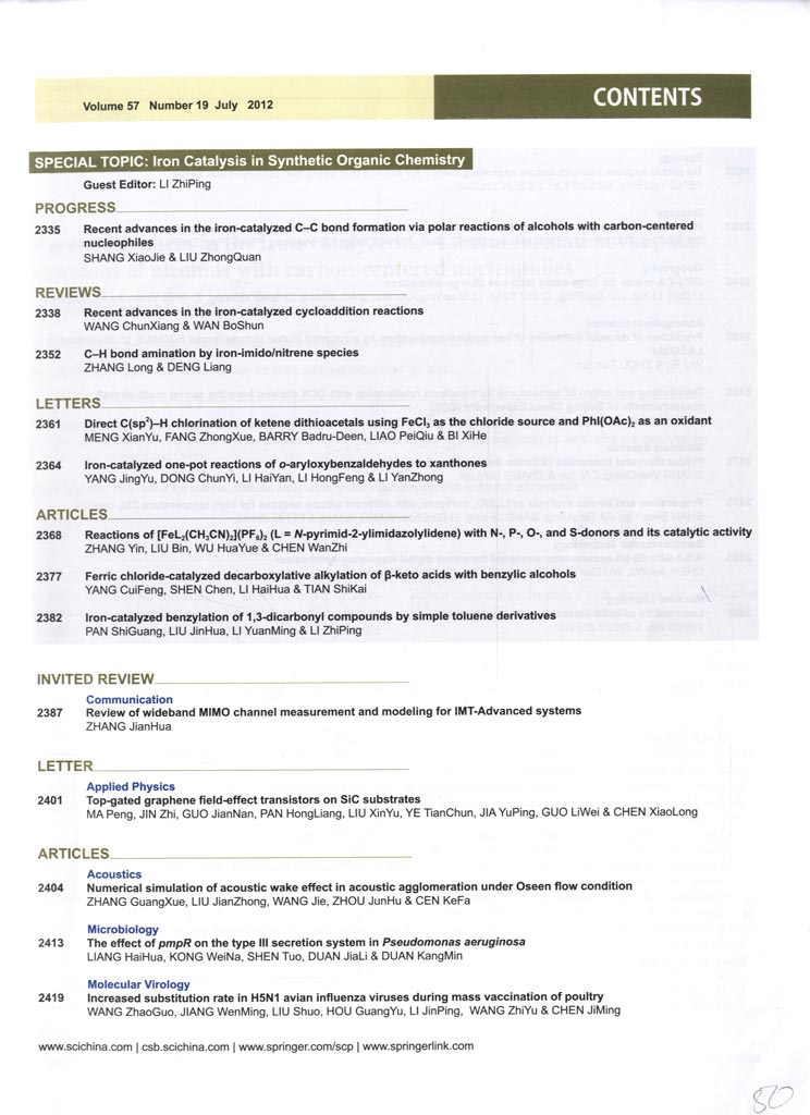 Iron catalysis in synthetic organic chemistry /guest Li ZhiPing . - Beijing : Science in China press; Heidelberg : Springer,. - C. 2335-2491, [3] : ил., табл. - Chinese science bulletin. -2012. -Vol. 57, N 19, spec. topic. Обложка 1 Оглавление12
