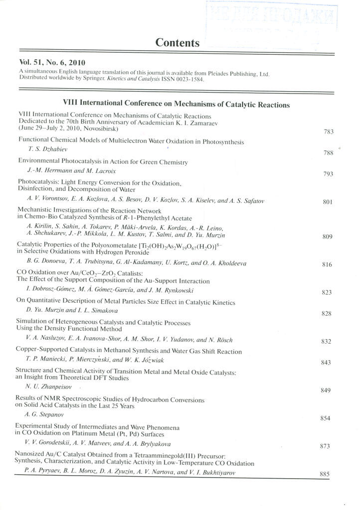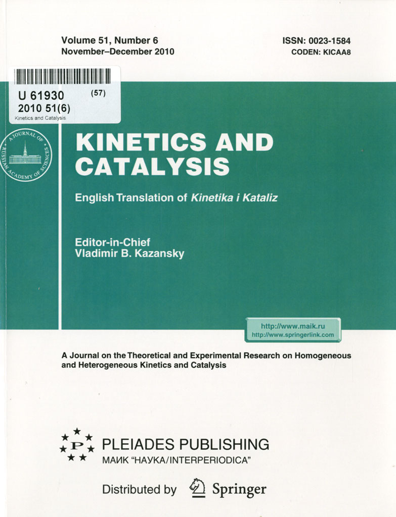 Kinetics and catalysis. -2010. -Vol. 51, N 6. В содерж. также: VIII International conference on mechanisms of catalytic reactions. Обложка 1 Оглавление123