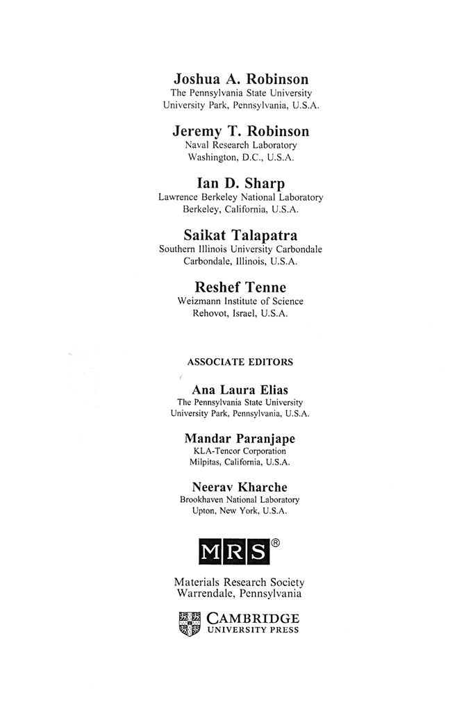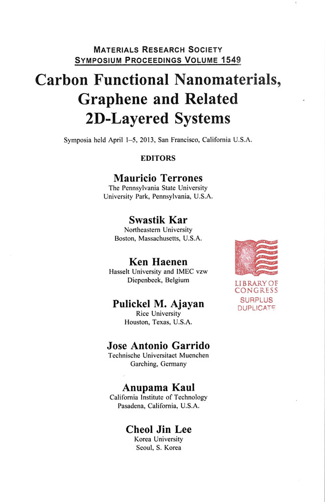 Carbon functional nanomaterials, graphene and related 2D-layered systems : Symposia held April 1-5, 2013, San Francisco, California, U.S.A. / ed. Terrones Mauricio [et al.]. -Cambridge : Cambridge univ. press, 2013. - XII, 163 c. : ил., табл. - Materials research society symposium proceedings ; vol. 1549. - На обл. загл. сер.: MRS symposium proceedings. Обложка 1 Оглавление12345