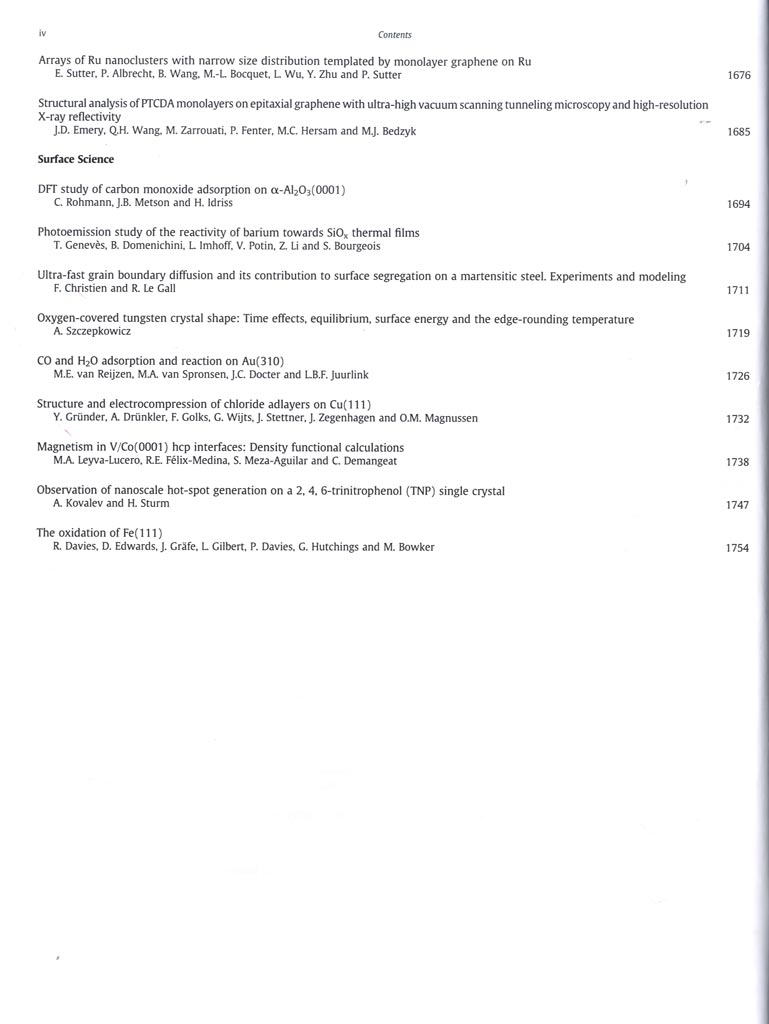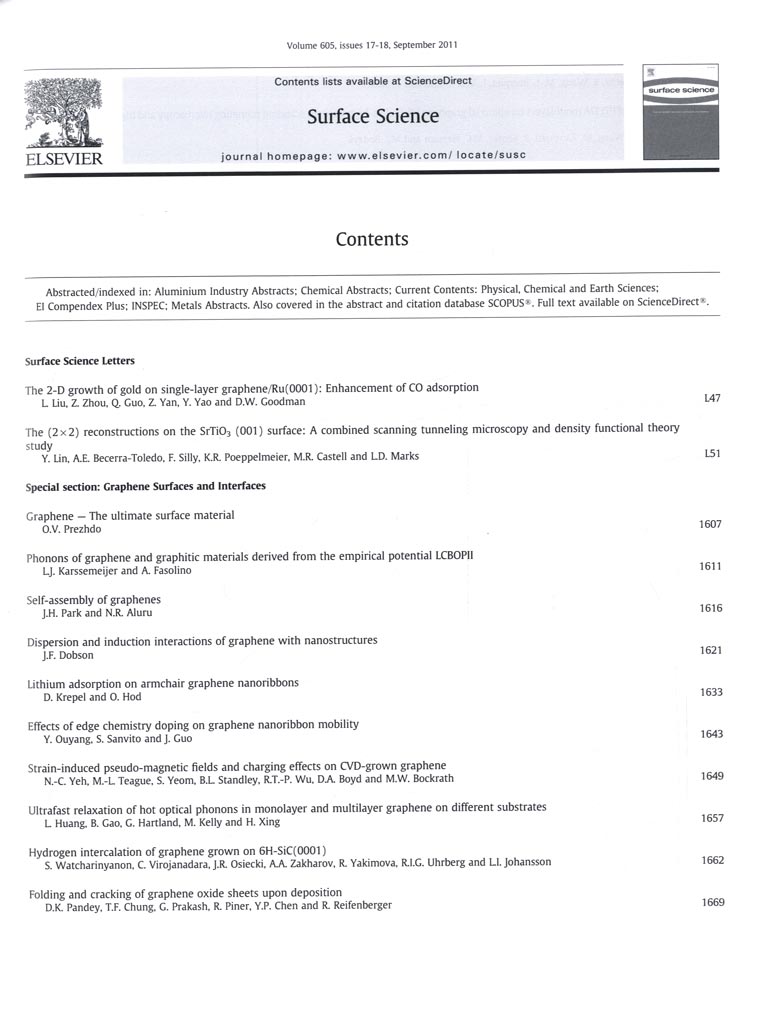 Graphene surfaces and interfaces / ed. by Prezhdo Oleg. -Amsterdam [etc.] : Elsevier, 2011. - IV, c. L47-L55, 1607-1762 : ил., табл. - Surface science, ISSN 0039-6028 ; vol. 605, iss. 17-18, spec. sect. Обложка 1 Оглавление12