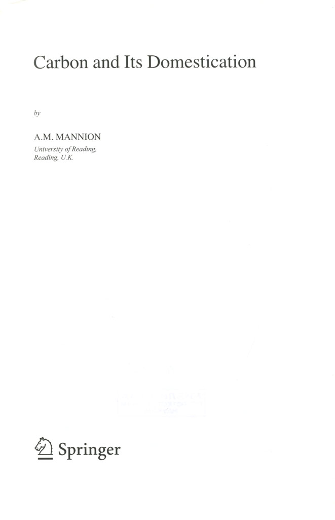 Mannion Antoinette M. Carbon and its domestication / by Mannion A.M. -Dordrecht : Springer, cop. 2006. - XIV, 319, [1] c. : ил., табл. - Библиогр.: с. 287-301. Указ.: с. 303-319. Обложка 1 Оглавление12345678