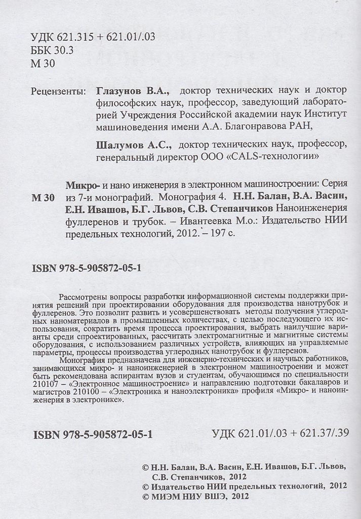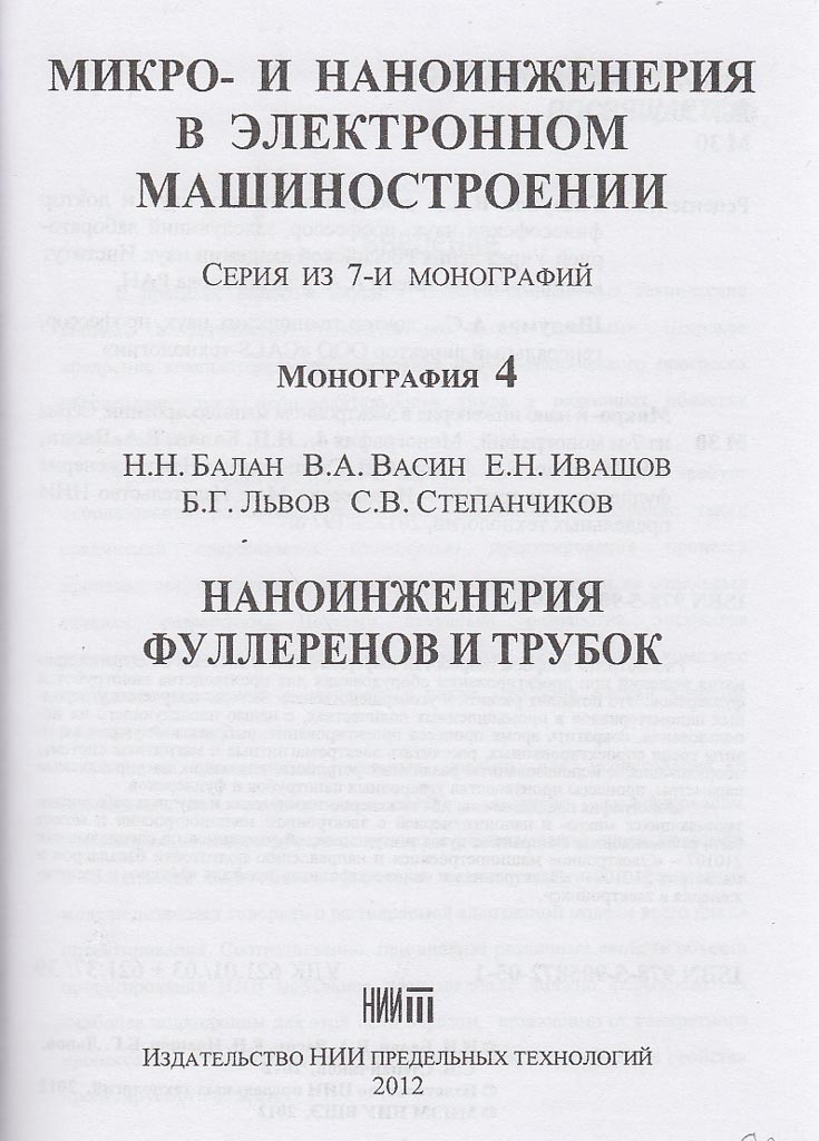 Микро- и наноинженерия в электронном машиностроении. Моногр. 4 : Наноинженерия фуллеренов и трубок / Балан Никита Николаевич [и др.]. -2012. - 196 с. Обложка 1 Оглавление1234