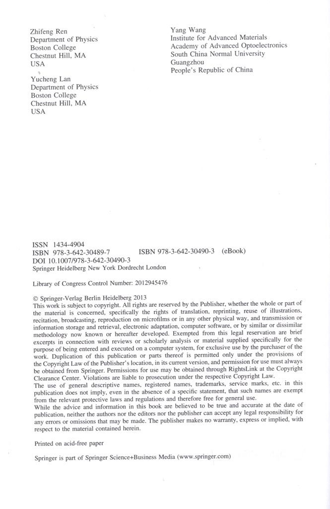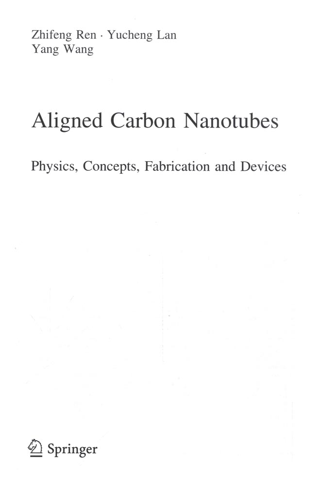 Ren Zhifeng. Aligned carbon nanotubes : physics, concepts, fabrication and devices / Ren Zhifeng, Lan Yucheng, Wang Yang. -Heidelberg : Springer, cop. 2013. - XVI, 299 c. : ил., табл. - NanoScience and technology, ISSN 1434-4904. Обложка 1 Оглавление12345