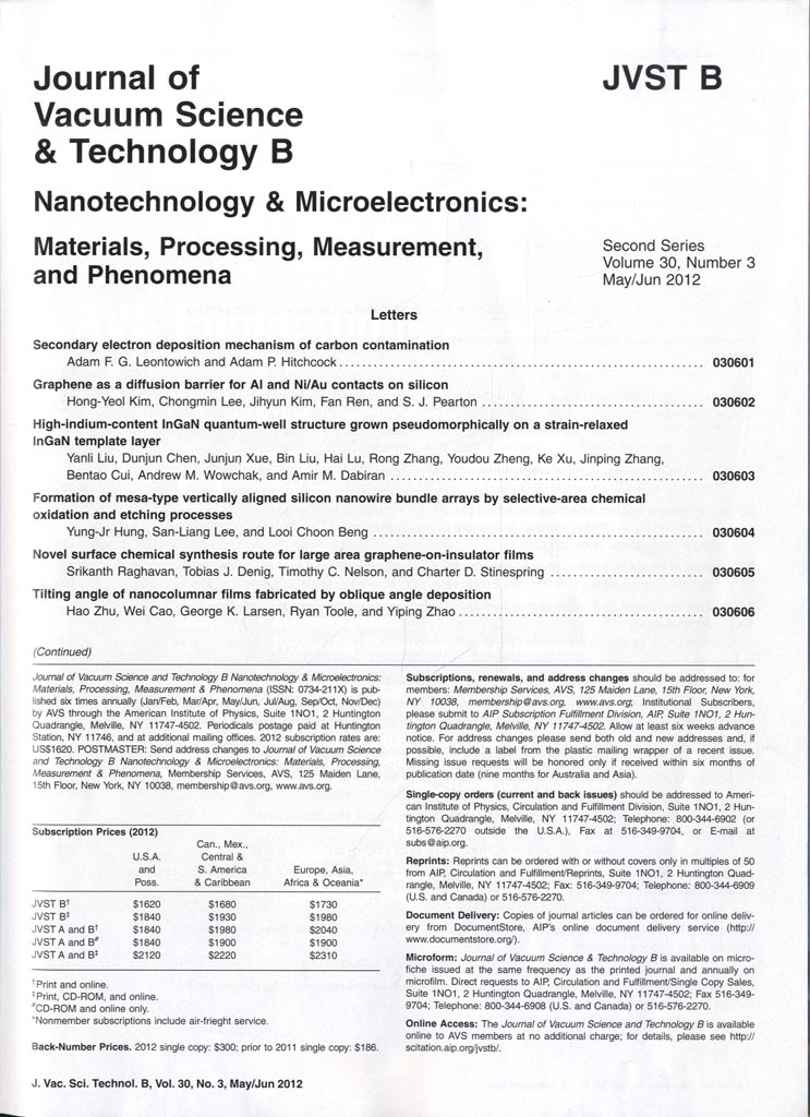 Special issue on graphene and related materials. -New York : Amer. inst. of physics, 2012. - Разд. паг. : ил., табл. - Journal of vacuum science & technology : JVST. B, Nanotechnology & microelectronics: materials, processing, measurement, & phenomena. Ser. 2, ISSN 2166-2746 ; vol. 30, nr 3. Обложка 1 Оглавление12345